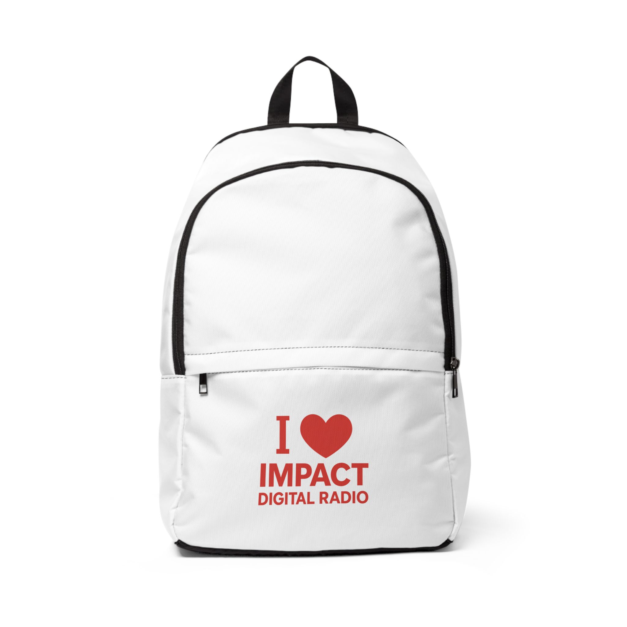 I Love Impact Digital Radio Backpack | Stylish Unisex Fabric Bag | Perfect for Students, Travel, and Everyday Use